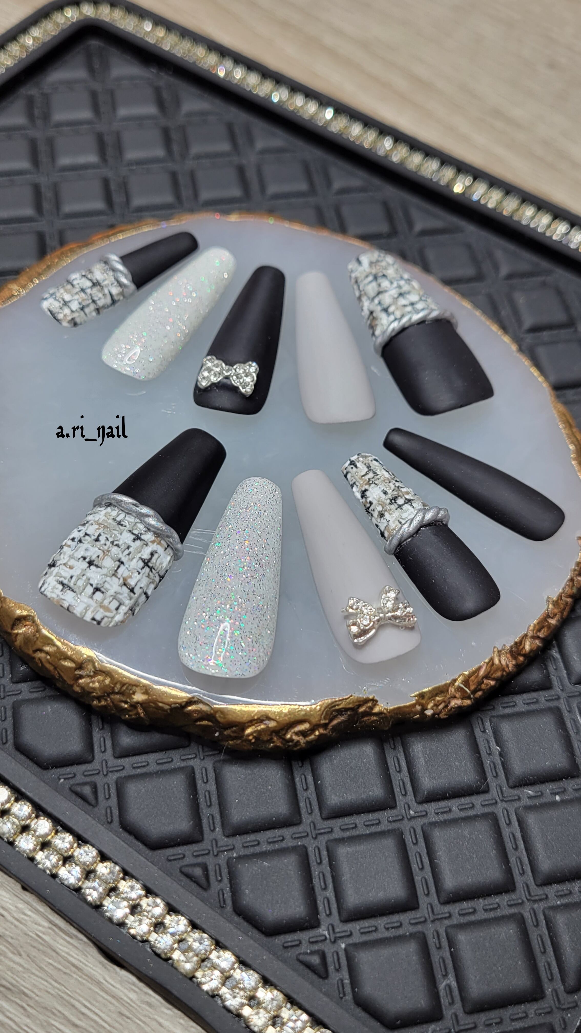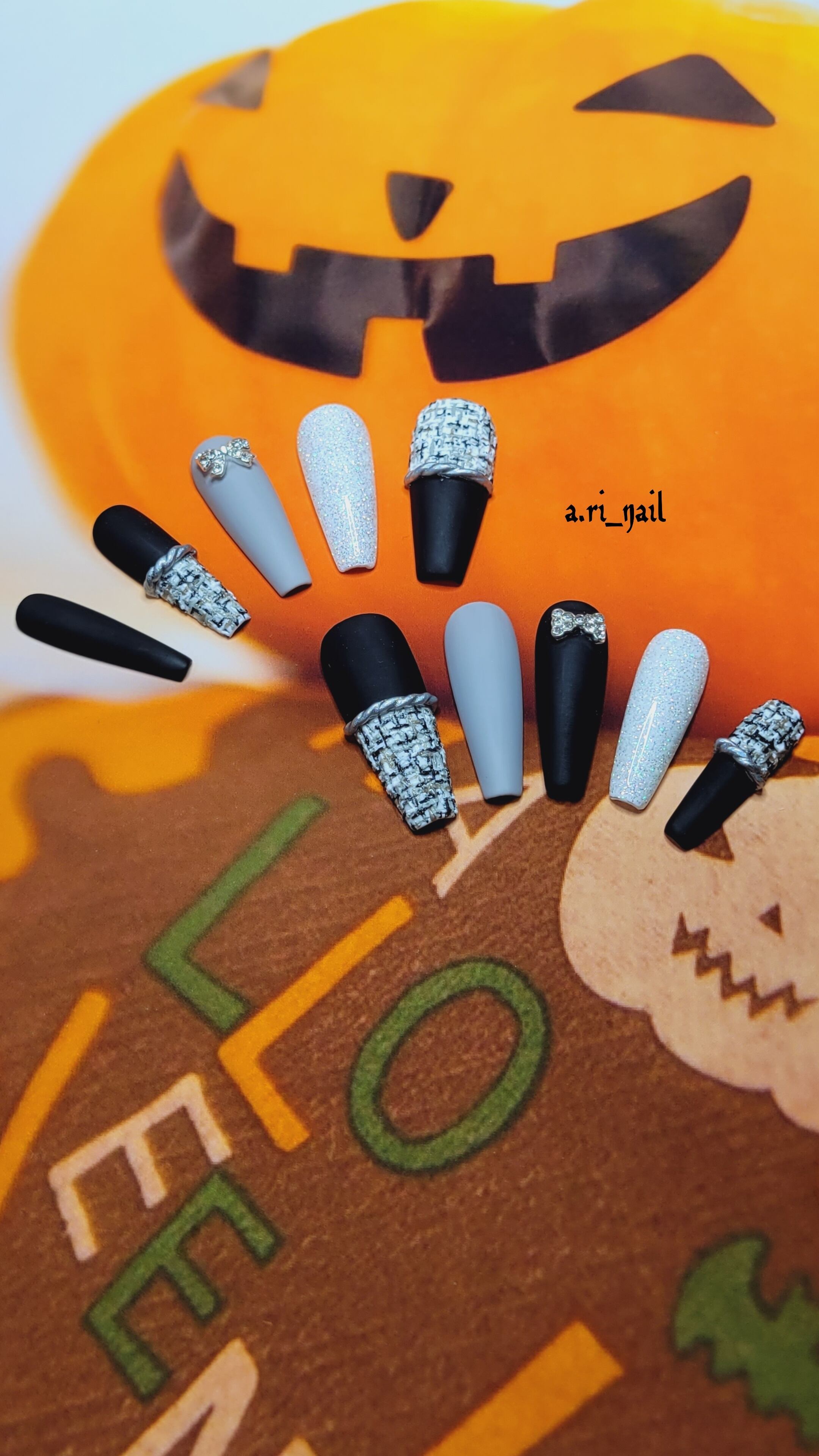 白黒グレーでモノトーンに仕上げたマットなツィードネイルです✨